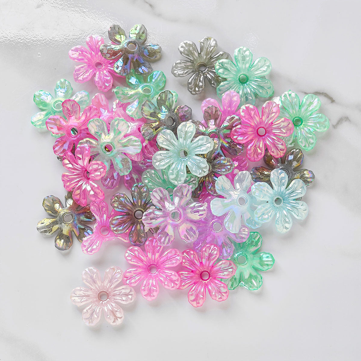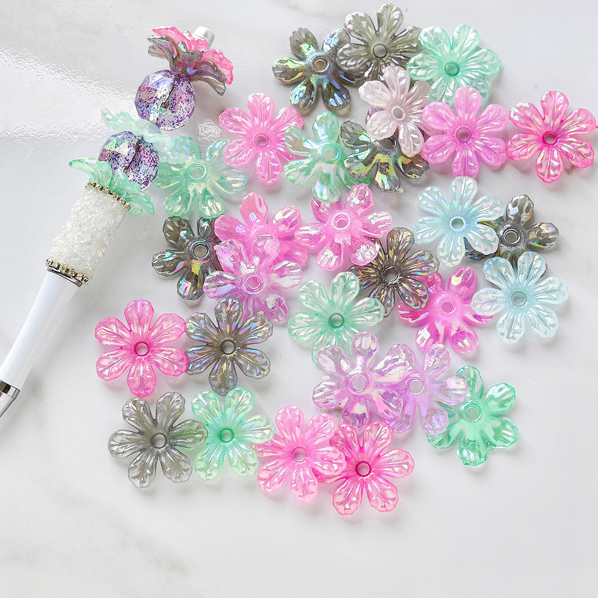 AA125 30pcs/Bag Acrylic Gold Foil 19mm Sakura Flower Petals With Gradient Colors And Gold Edges DIY Handmade Headwear Accessories, Suitable For DIY Hairpins, Phone Cases, Clothing Accessories, Key Rings And Jewelry Resin Materials Valentines